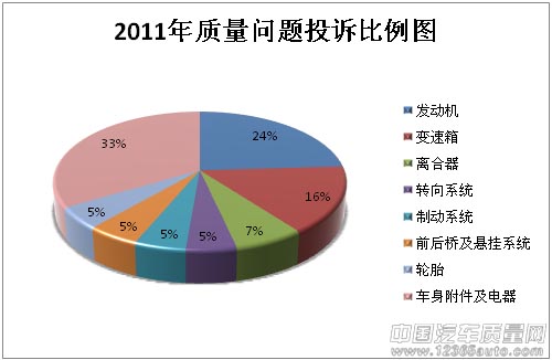 在2011年投訴中,發(fā)動機、變速箱、車身附件及電器問題投訴量占到總投訴量的7成,其中車身附件及電器問題大部分是反映電子油門問題及空調(diào)問題的投訴。發(fā)動機、變速箱、電子油門問題可以歸為車輛動力及傳輸系統(tǒng)方面故障,這些問題直接影響車輛的正常行駛...