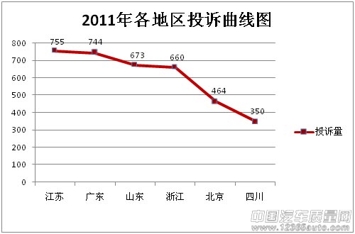 根據(jù)數(shù)據(jù)分析,2011年,江蘇、廣東、山東、浙江、北京、四川等六省區(qū)的車主表現(xiàn)活躍,成為投訴量最高的六個地區(qū)。 數(shù)據(jù)還顯示,其中南方地區(qū)高于北方地區(qū),東部地區(qū)高于西部地區(qū)。一方面與地區(qū)經(jīng)濟發(fā)展有關(guān),另一方面也與氣候有直接的關(guān)系。結(jié)合三季度...