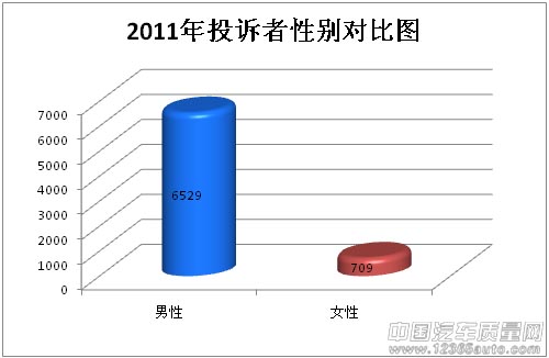 2011年中國汽車質(zhì)量網(wǎng)投訴者中,男性人群有6529人,女性人群只有709人,男性占九成之多。這說明在車輛問題的認(rèn)知方面,男性要優(yōu)于女性,對于車輛問題有一定的判斷能力。女性消費者還需要多加強車輛知識方面的了解,對于車輛問題及時發(fā)現(xiàn),以免留有安全...