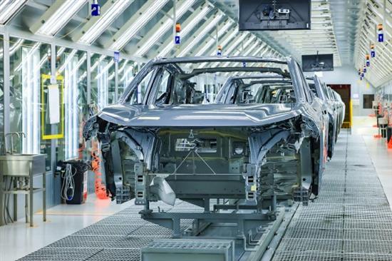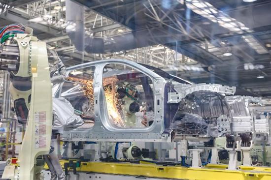焊接車間:自動(dòng)化程度在95%以上,總共185個(gè)焊接工位和471臺(tái)自動(dòng)化機(jī)器人廣泛分布在車間各處,提升焊接作業(yè)的精準(zhǔn)度,并通過大量引入新型的鋁合金鉚接工藝,提升車身強(qiáng)度。同時(shí),針對車身側(cè)圍強(qiáng)度,焊接車間采用了業(yè)內(nèi)最先進(jìn)的一體式熱成型技術(shù),將側(cè)圍內(nèi)板的強(qiáng)度提升至普通汽車側(cè)圍內(nèi)板的2-3倍。