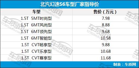 北汽幻速S6上市 售價(jià)7.98-11.68萬(wàn)元